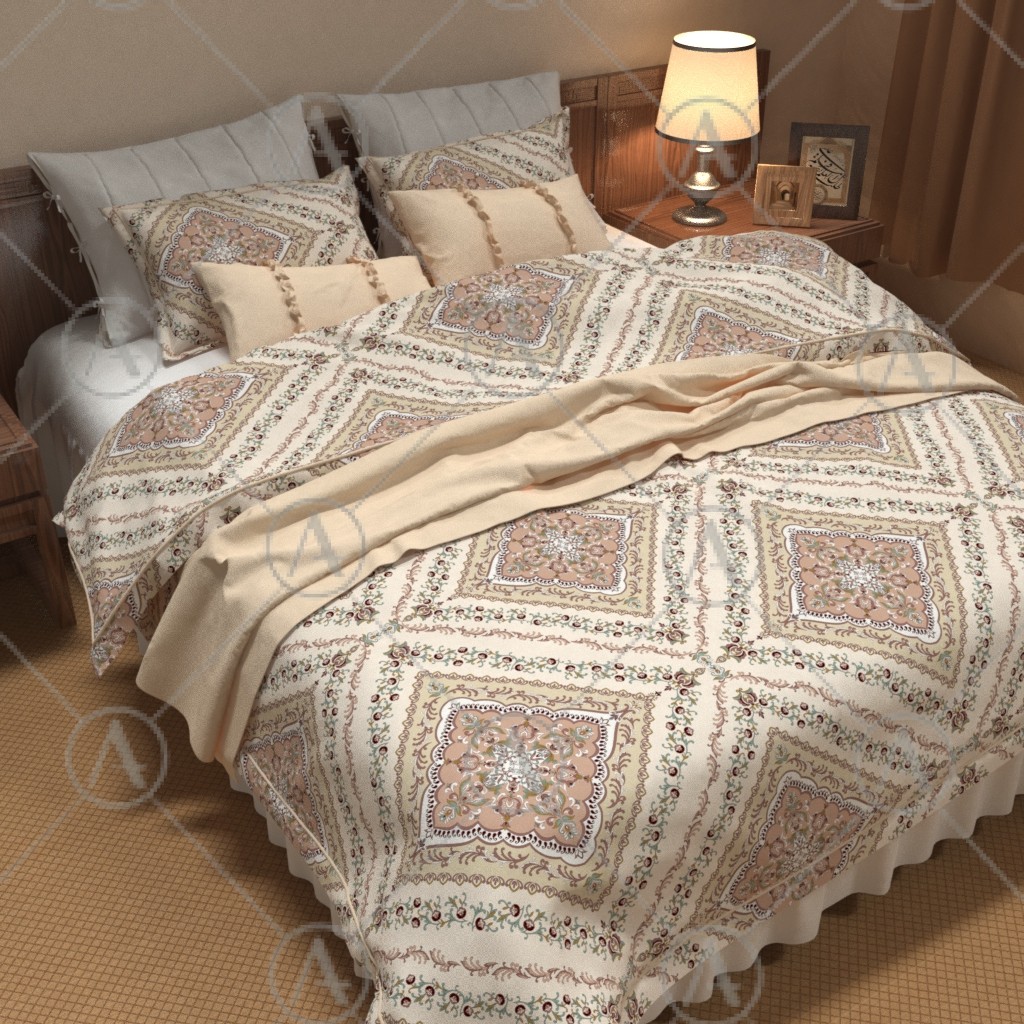 This design can be used for bed sheets and can be used for rotary printing (with a width of 90 cm to 300 cm) and digital and silk printing (without resolution and dimension restrictions).